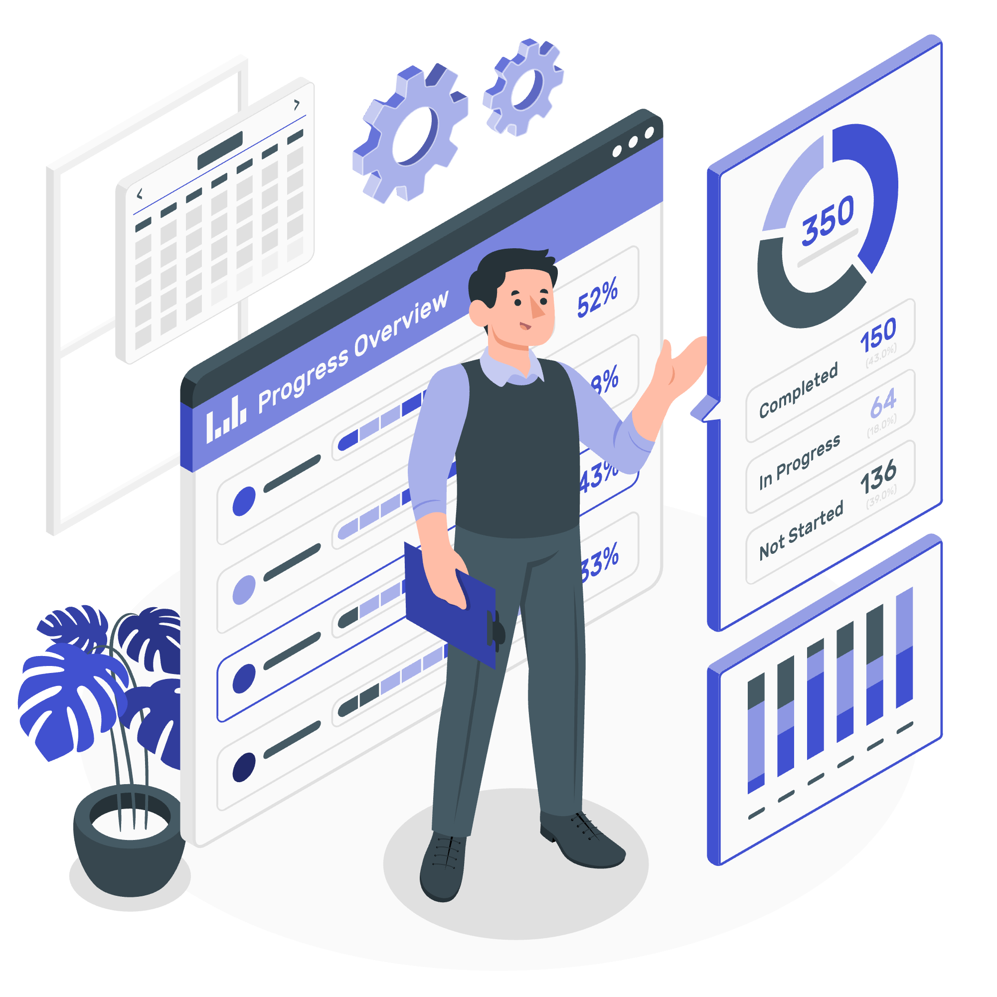 例えば、複数プロジェクトの進捗を一覧化することで、遅延の兆候をいち早く察知し、経営層やPMに警鐘を鳴らすことができます。
